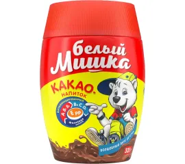 В производстве быстрорастворимого какао-напитка «Белый Мишка» использованы только высококачественные, натуральные компоненты. Меньше сахара – больше какао. Волшебный вкус детства. Подходит для детей с 3 лет.
