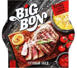 Лапша Big Bon с тушеной говядиной, зеленью и пряностями. Готовый обед с натуральным тушеным мясом!