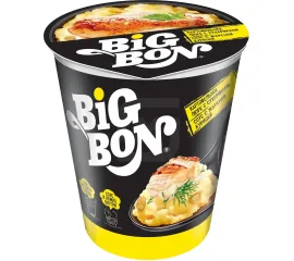 Пюре картофельное Big Bon «По-домашнему с кусочками тушеной курицы» производится из высококачественных ингредиентов. Пюре имеет густую консистенцию, содержит в составе сушеную зелень, ароматные пряности и кусочки тушеной курицы.