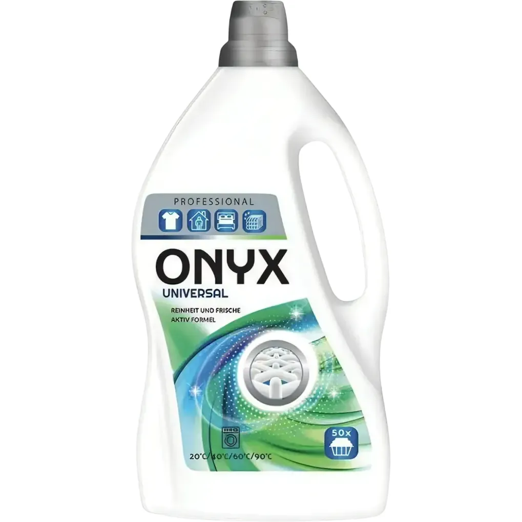 Гель для стирки Onyx Professional «Универсальный» - гиппоалергенный универсальный концентрированный гель для стирки цветных и белых вещей. Бережно очищает, сохраняя структуру ткани, ее мягкость. Придает свежесть. Возвращает яркость цветным тканям, предотвращает вымывание краски. Удаляет даже самые стойкие, засохшие и въевшиеся загрязнения с разных типов ткани. Не оставляет разводов и пятен на ткани. Особая формула не содержит агрессивных веществ, фосфатов и не причиняет вред окружающей среде. Экономичен в использовании благодаря концентрированной формуле.