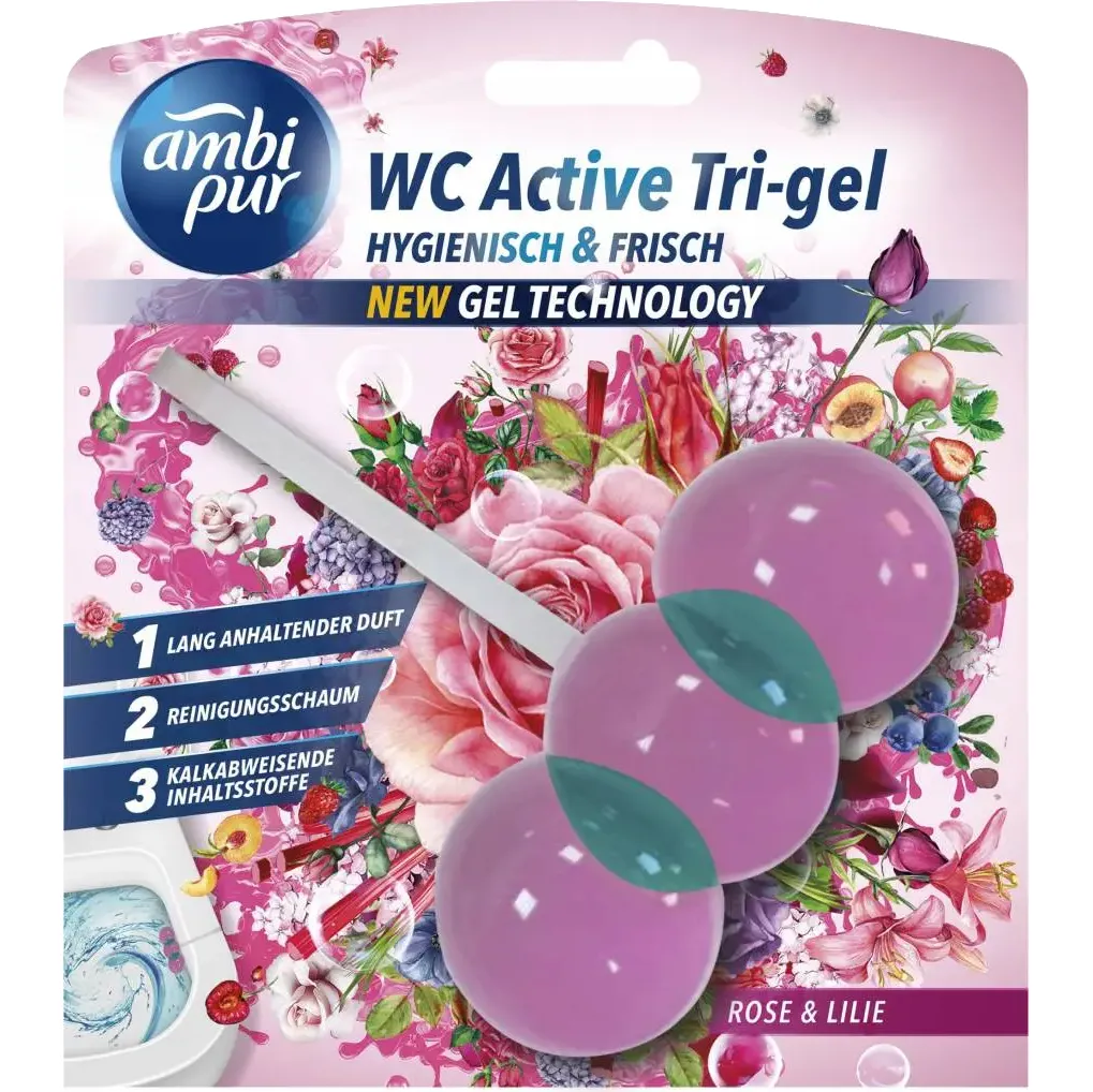 Блок для очищения унитаза Ambi Pur WC Active Tri-gel «Роза и лилия», 45 г.