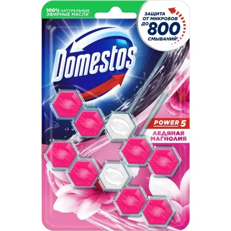 Блок для очищения унитаза Domestos Power 5 «Ледяная магнолия» (55 г х 2 шт)