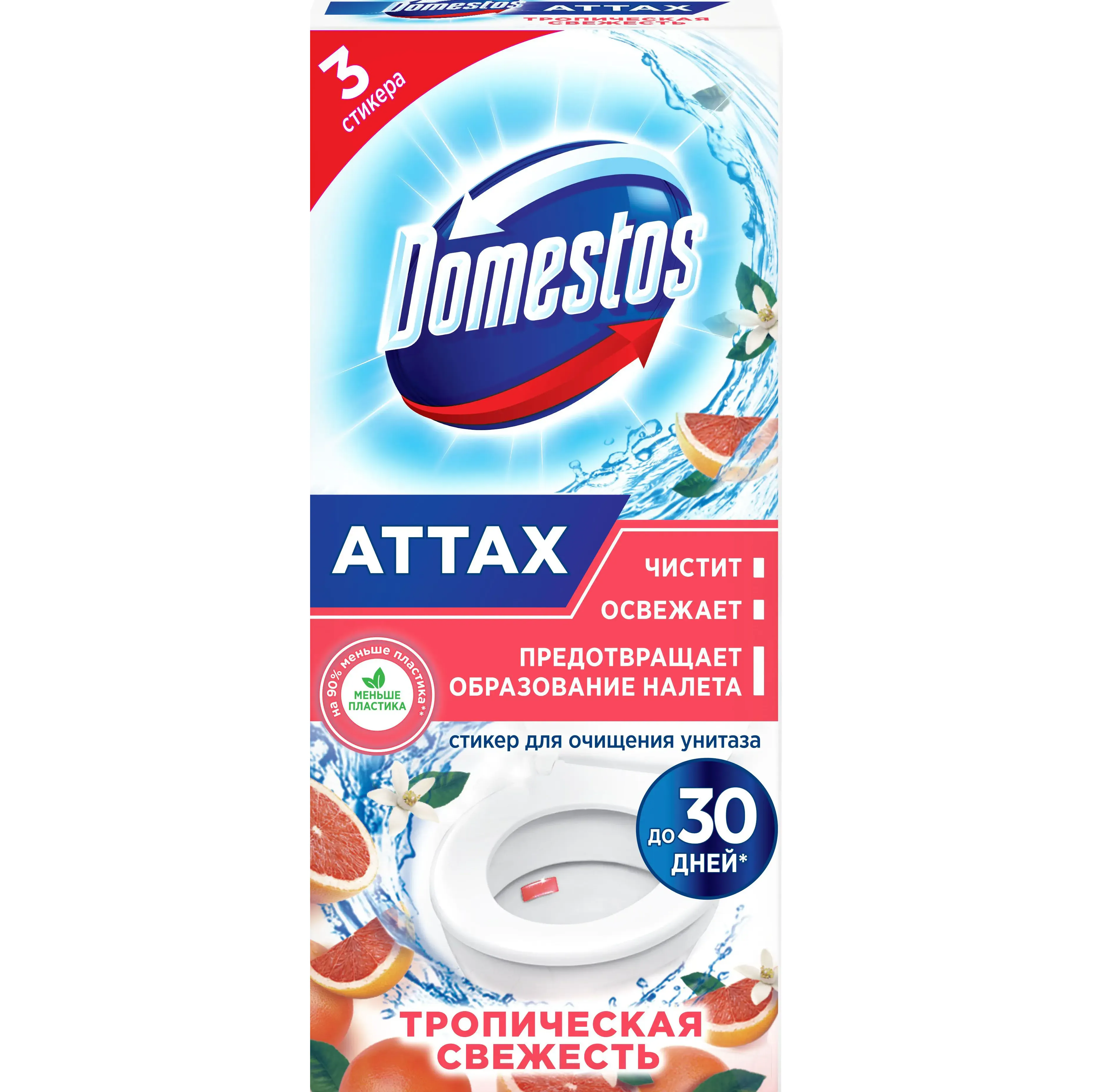 Стикер для очищения унитаза Domestos Attax «Тропическая свежесть», 3 шт.