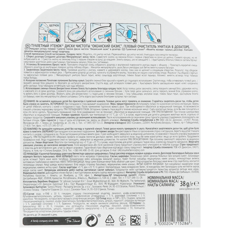 Диски чистоты для унитаза Туалетный утёнок «Океанский оазис», основной блок
