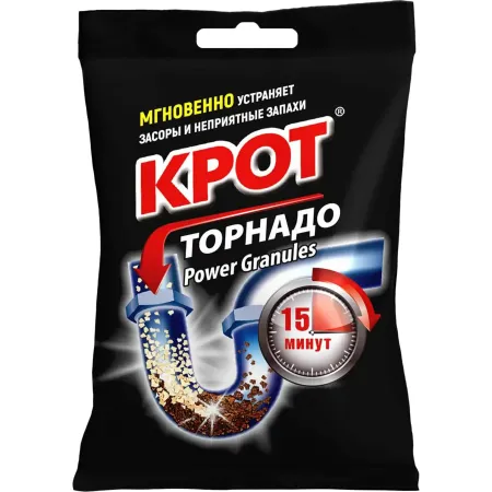 Гранулированное средство для прочистки труб Крот «Торнадо», 90 г.
