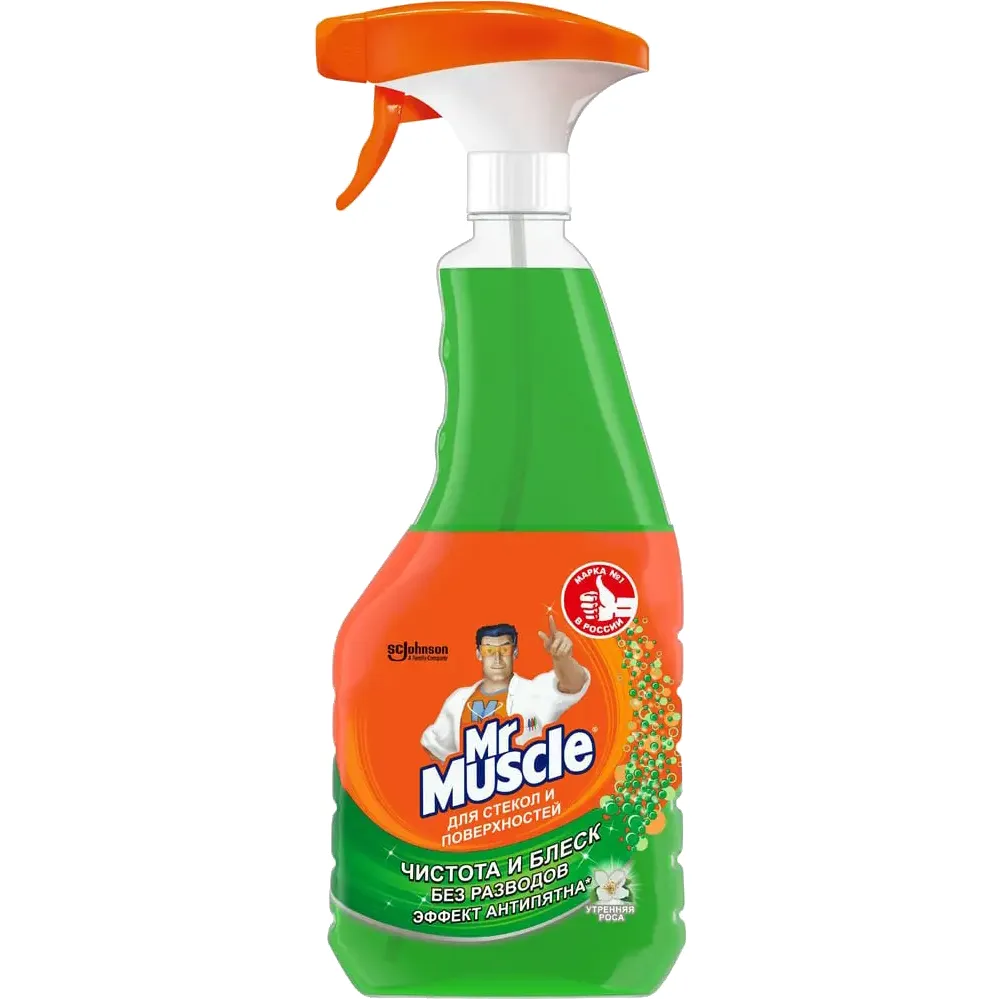 Благодаря входящему в состав изопропиловому спирту, чистящее средство Mr. Muscle эффективно удаляет грязь, жир, сажу, минеральные масла, придает блеск и не оставляет разводов. Идеально подходит для мытья оконного, витринного автомобильного стекол, зеркал, кафеля, внешних панелей электробытовых приборов, хромированных поверхностей, поверхностей из нержавеющей стали, поверхности холодильника.