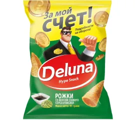 Снеки кукурузные Deluna «Рожки со вкусом соевого соуса и васаби», 85 г.