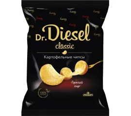 Рады вам презентовать премиальную линейку тончайших хрустящих ломтиков чипсов из 100% натурального картофеля «Dr.Diesel»! Чипсы производятся на самом крупнейшем ультрасовременном заводе в России, а собственная селекция картофеля «чипсовых» сортов гарантирует непревзойденное качество продукции. Создано для истинных гурманов, готовых открыть новые горизонты вкуса. Чипсы со вкусом горячего сыра это что-то новое! Плавящийся сыр с кремовой текстурой и богатым вкусом заворожит вас с первого укуса! Каждое похрустывание — симфония наслаждения.