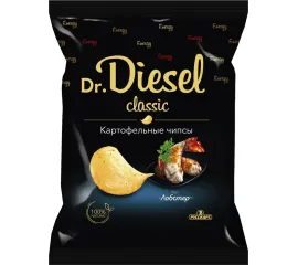 Рады вам презентовать премиальную линейку тончайших хрустящих ломтиков чипсов из 100% натурального картофеля «Dr.Diesel»! Чипсы производятся на самом крупнейшем ультрасовременном заводе в России, а собственная селекция картофеля «чипсовых» сортов гарантирует непревзойденное качество продукции. Создано для истинных гурманов, готовых открыть новые горизонты вкуса. Погрузитесь в мир морского деликатеса с чипсами со вкусом лобстера. Их океанская свежесть и легкий сладковатый вкус унесут вас на побережье, где светит солнце и плещутся волны.