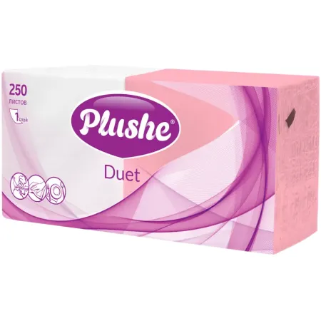Бумажные салфетки Plushe Duet «Белый-Розовый», 1 слой, 250 шт.
