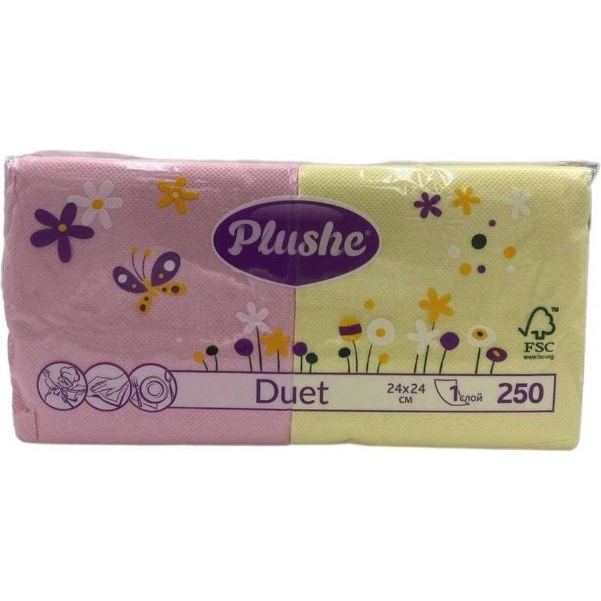 Салфетки однослойные бумажные «Duet» Желтый-Розовый, Plushe, 250 шт.