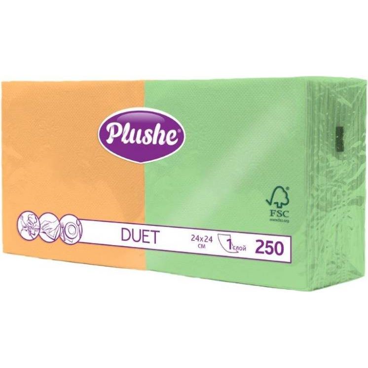 Салфетки однослойные бумажные «Duet» Абрикосовый-Салатовый, Plushe, 250 шт.