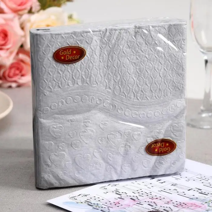 Салфетки бумажные Gold decor (33*33 3 слоя) "Silver heart", 20 листов.