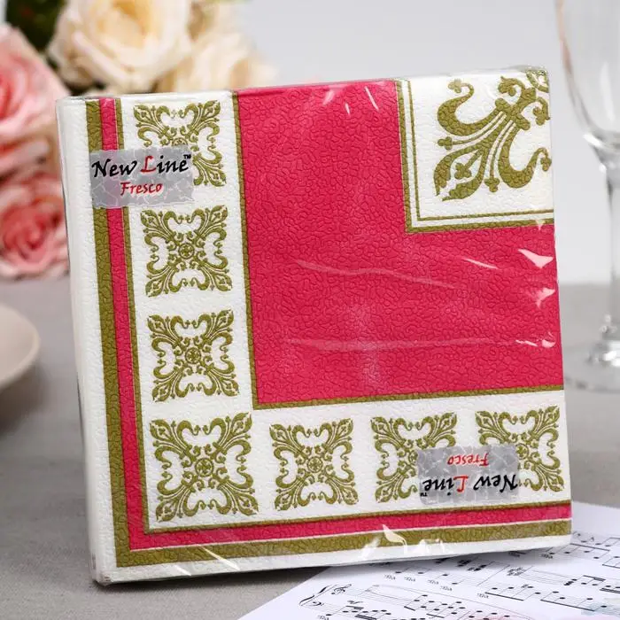 Салфетки бумажные New Line Fresco (33*33 2 слоя) "Верона красная", 20 листов.