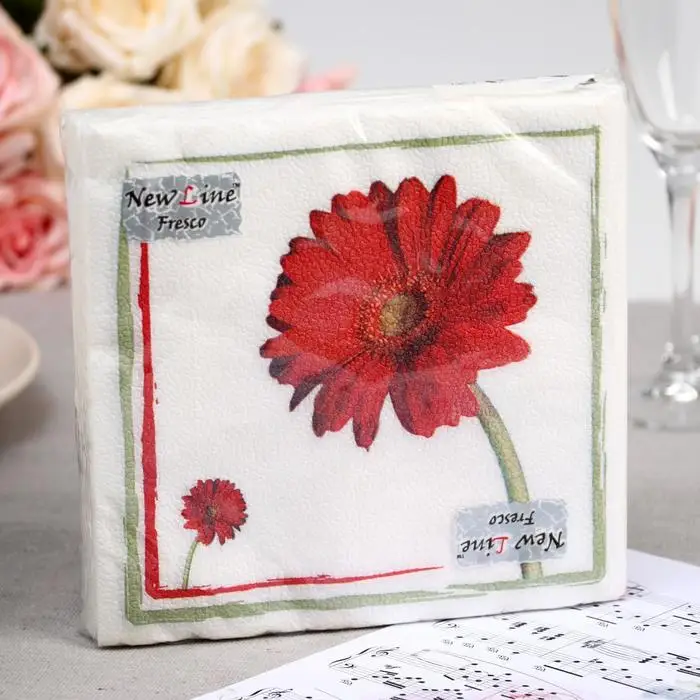 Салфетки бумажные New Line Fresco (33*33 2 слоя) "Герберы", 20 листов.