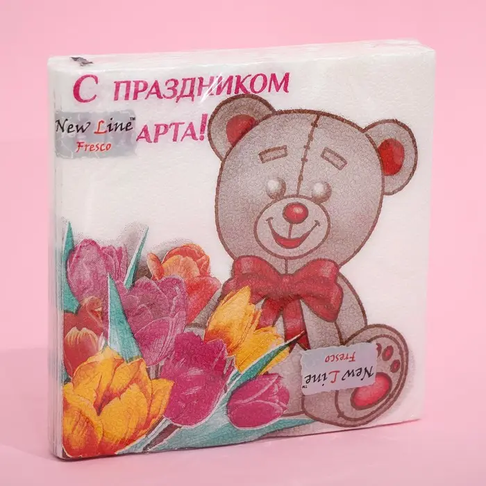 Салфетки бумажные New Line Fresco (33*33 2 слоя) "С 8 марта", 20 листов.