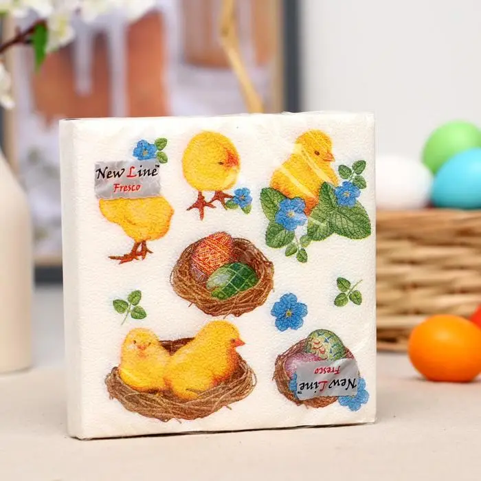 Салфетки бумажные New Line Fresco (33*33 2 слоя) "Пасха Цыплята", 20 листов.