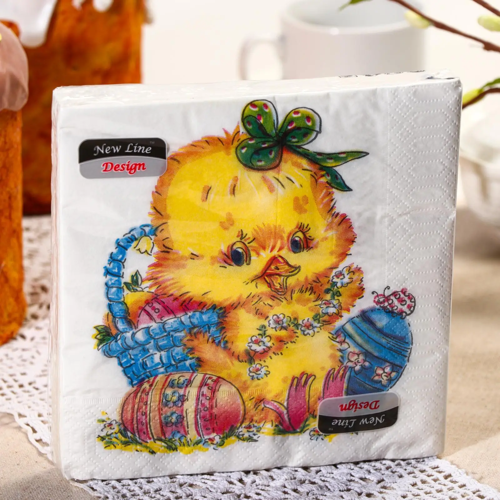 Салфетки бумажные New Line Design (33*33 3 слоя) "Пасха Цыпленок", 20 листов.