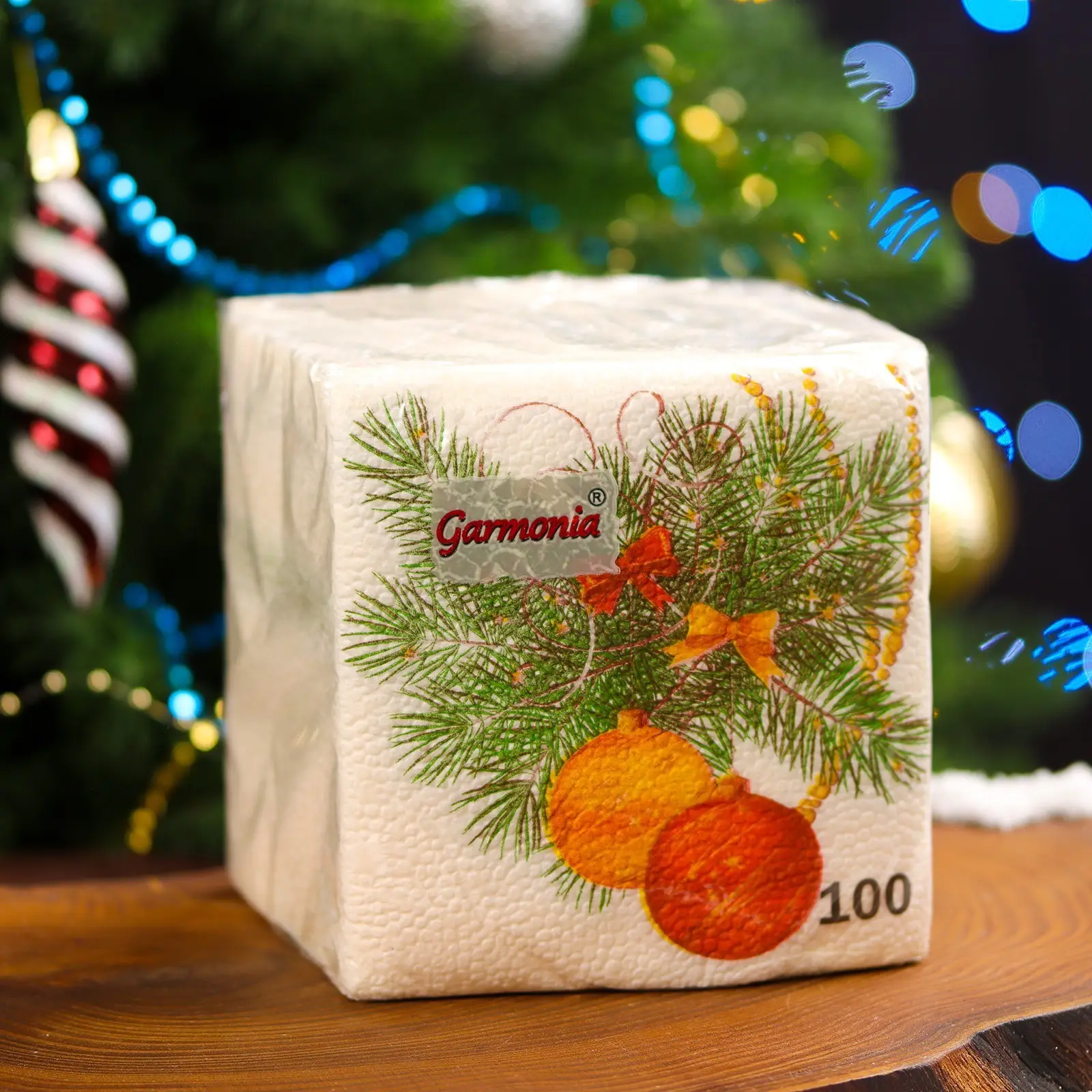 Бумажные салфетки Гармония цвета (24 х 24), 1 слой, «Новогодний кант», 100 шт.