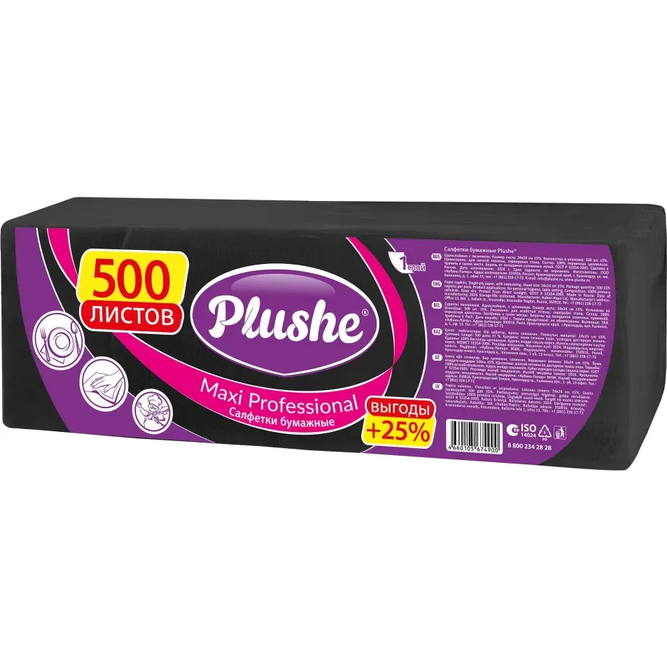 Бумажные салфетки Plushe Maxi Professional «Черный», 1 слойные, 500 шт.