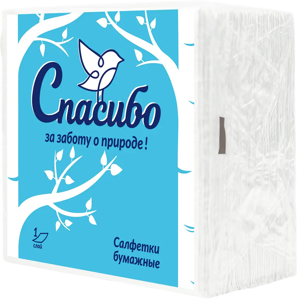 Бумажные салфетки «Спасибо за заботу о природе» изготовлены из 100% вторичного сырья. Современные технологии позволяют создать из восстановленного целлюлозного волокна такую же привычную белую салфетку с отличными впитывающими свойствами. Однослойные бумажные салфетки «Спасибо за заботу о природе» подойдут, как для личной гигиены, так и для сервировки стола и хозяйственно-бытового использования. Покупая продукцию из вторичного сырья, вы вносите свой вклад в сохранение лесов и планеты.