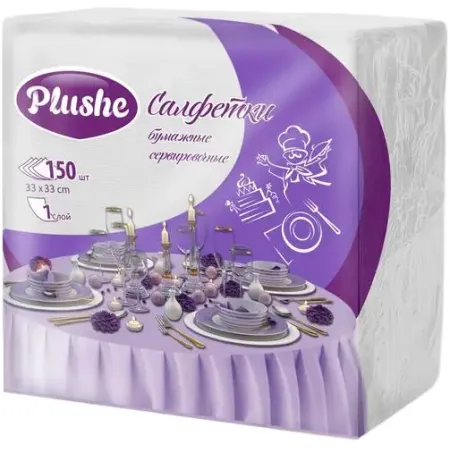 Бумажные салфетки Plushe «Белые», 1 слой, 150 листов