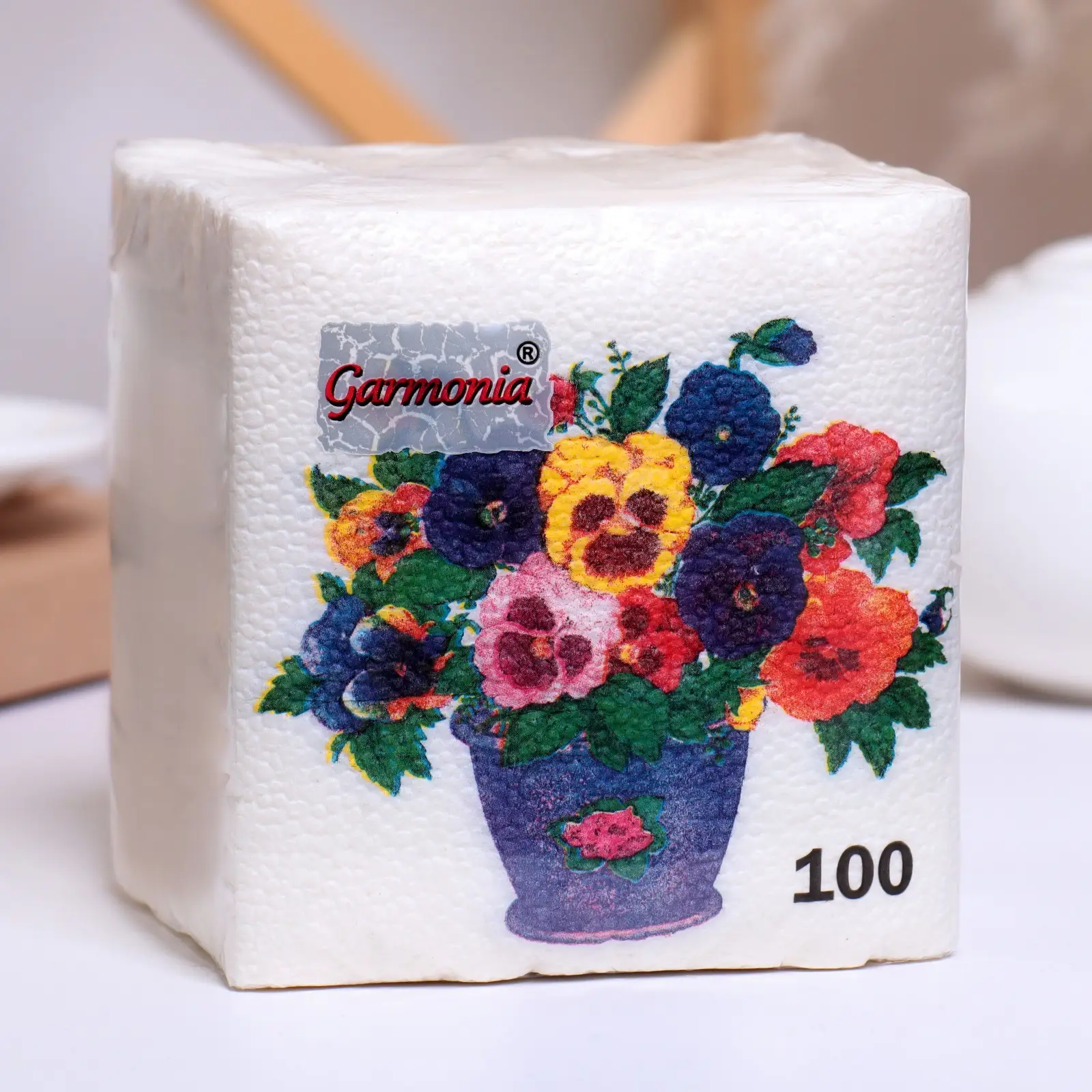 Салфетки Гармония цвета «Многоцветие. Анютины глазки», 100 шт.