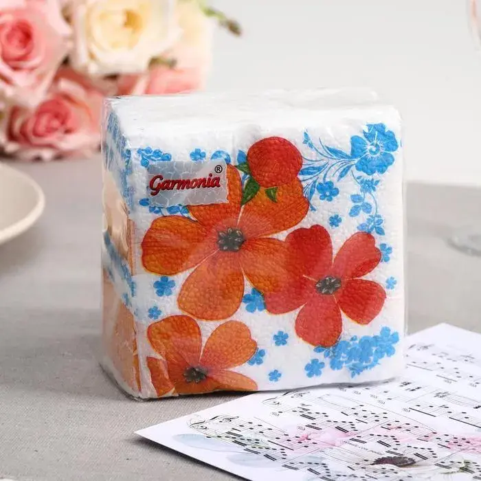 Салфетки Гармония цвета «Многоцветие. Цветочный орнамент», 100 шт.