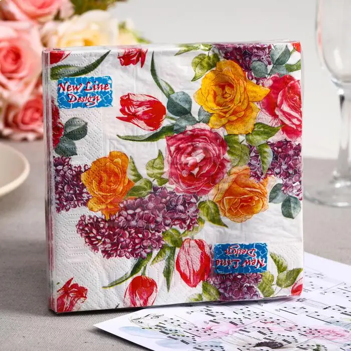 Салфетки New Line Design (33 x 33), 3 слоя, «Цветочный орнамент», 20 листов