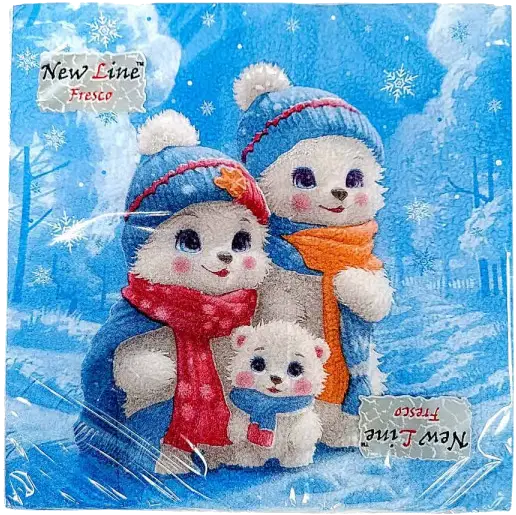 Салфетки New Line Design (33 x 33), 3 слоя, «Медвежата», 20 листов