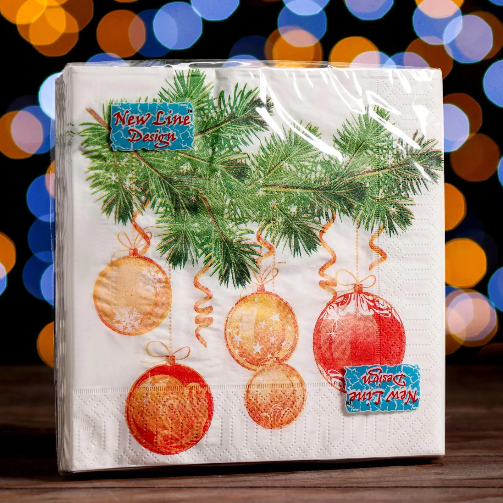 Салфетки New Line Design (33 x 33), 3 слоя, «Шары на ветке», 20 листов