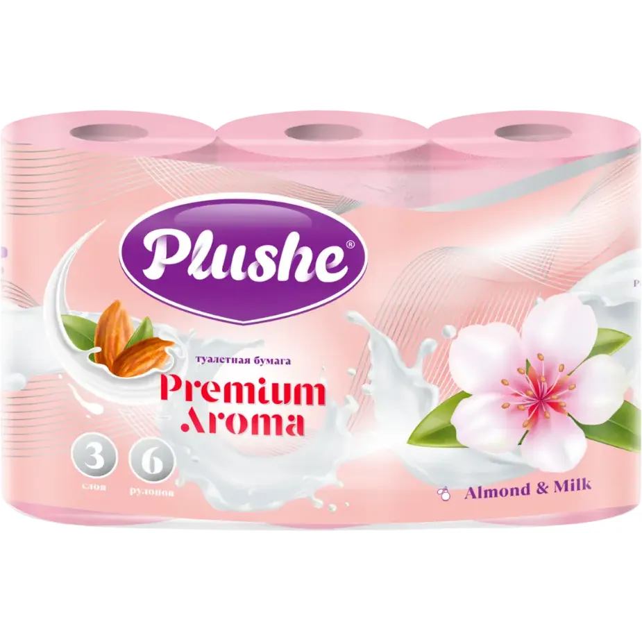 Туалетная бумага Plushe Premium Aroma «Almond & Milk», 3 слоя, 6 рулонов