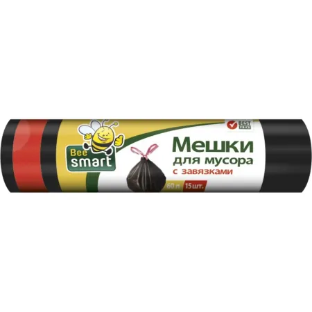 Мешки для мусора с завязками Beesmart (60 л), 15 шт.