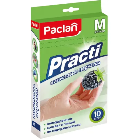 Виниловые одноразовые перчатки Paclan Practi (M), 10 шт.
