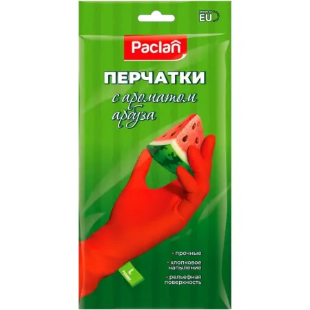 Хозяйственные резиновые перчатки с запахом арбуза Paclan (L), 1 шт.