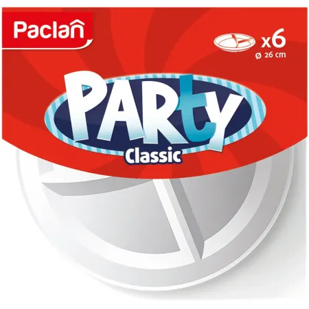 Одноразовые тарелки Paclan Party Classic, 260 мм, трехсекционные, 6 шт.