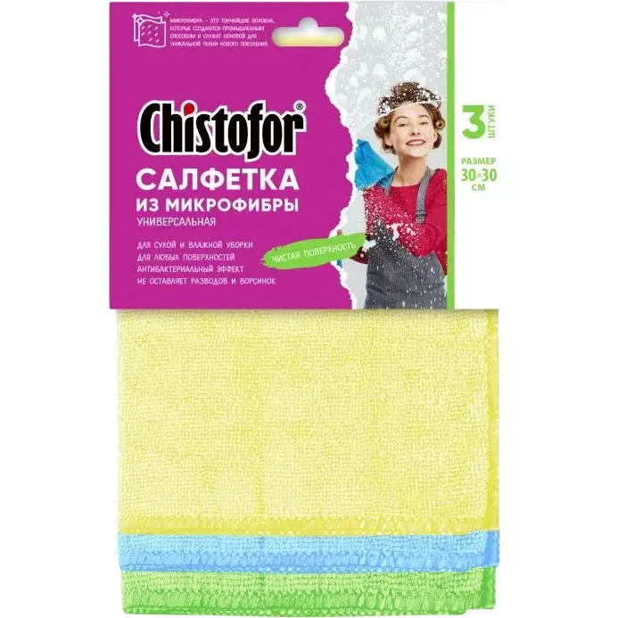 Салфетка из микрофибры Chistofor «Универсальная», 3 шт.