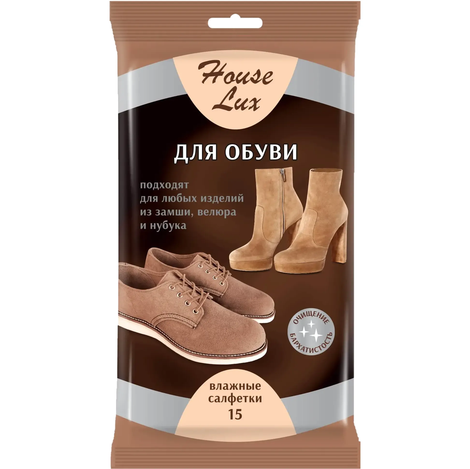 Влажные салфетки для замши, велюра и нубука «House Lux», 15 шт.