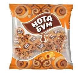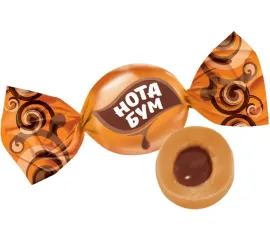 Мягкая жевательная карамель с орехово-шоколадной начинкой. Карамель Нота Бум - уникальный продукт. У конфеты нет аналогов в России. Особенность жевательной карамели - щелчок, который ощущается при раскусывании. Нежную сливочную ноту жевательной конфете дарит имеющееся в составе сгущенное молоко,...
