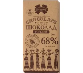 Горький десертный шоколад с ярко выраженным вкусом какао. Оптимальное сочетание горького и сладкого. Экологичная упаковка крафт.