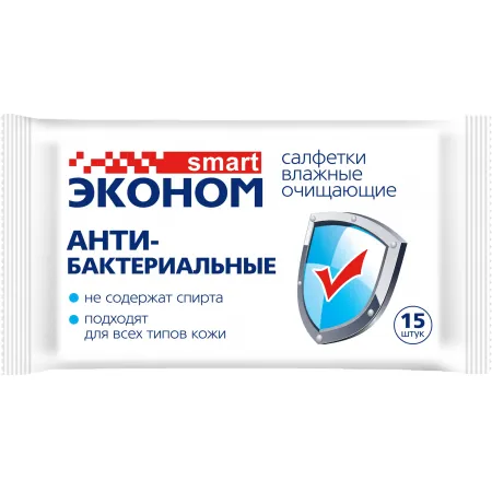 Влажные салфетки Эконом Smart «Антибактериальные», 15 шт.