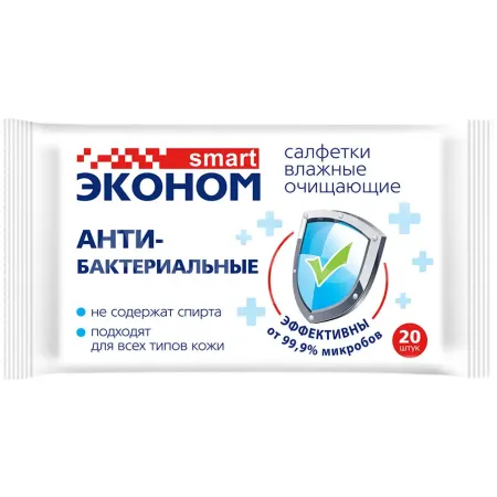 Влажные салфетки Эконом Smart «Антибактериальные», 20 шт.