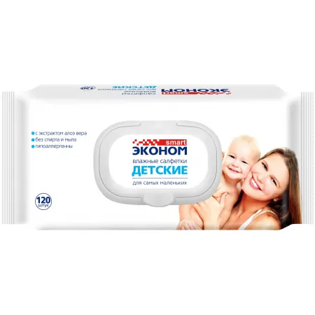 Детские влажные салфетки Эконом Smart, 120 шт.