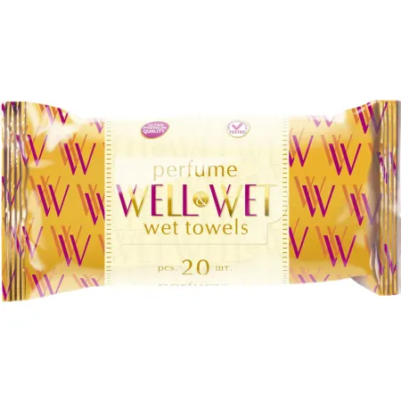 Влажные салфетки Well & Wet имеют мягкую структуру, при этом они достаточно плотные и не рвутся; парфюмированные салфетки имеют в составе натуральные, полезные для кожи, компоненты, растительные экстракты; салфетки не содержат спирта; салфетки не вызывают аллергических реакций; влажные салфетки не сушат кожу даже при частом применении; парфюмерные композиции имеют приятный и не резкий запах.