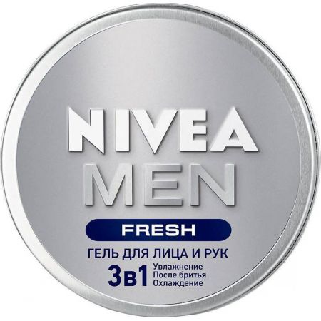 ель 3в1 Fresh для лица и рук NIVEA MEN обеспечивает мгновенную свежесть и 24-часовое увлажнение для лица, тела и рук. Формула, на основе 100% натуральной водяной мяты, Не оставляет ощущения липкости и не жирности. Гель сверхлегкий и легко наносится. Упаковка разработана для мужчин и поставляется в нашем мужественном и знаменитом дизайне заботится о растении, и банка сделана из 75% переработанного ПЭТ (без крышки).