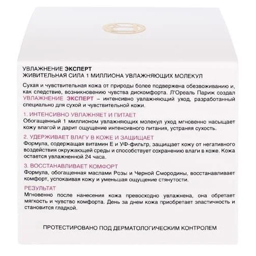 - 1 миллион увлажняющих молекул обеспечивают мгновенное увлажнение и интенсивное питание, устраняя сухость.
