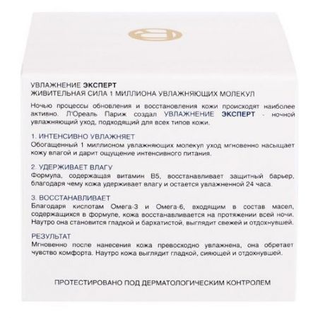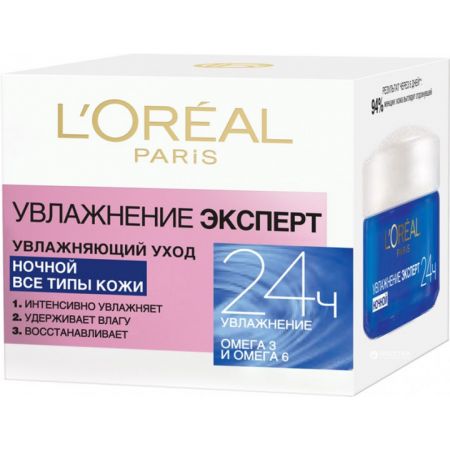 Ночью процессы обновления и восстановления кожи происходят наиболее активно. Ученые в лабораториях Лореаль Париж разработали линию средств УВЛАЖНЕНИЕ ЭКСПЕРТ, в которой представлен ночной увлажняющий крем, подходящий для всех типов кожи. Средство действует в трех направлениях: