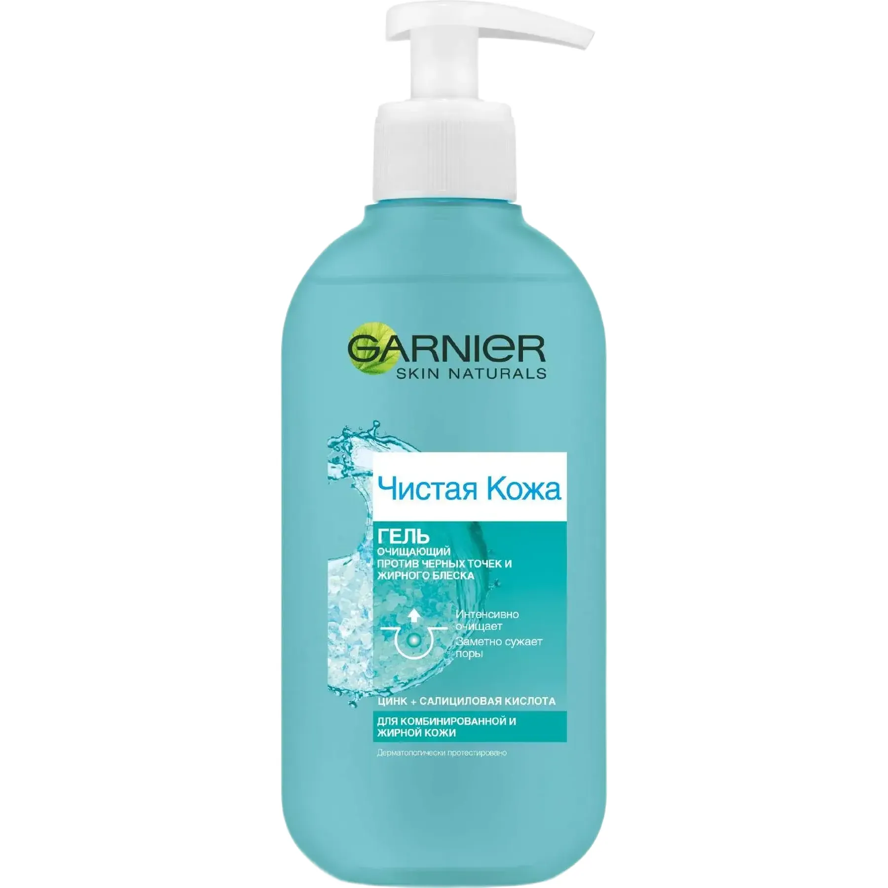 Очищающий гель против черных точек и жирного блеска Garnier «Чистая кожа», 200 мл.
