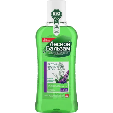 Новый ополаскиватель Лесной бальзам с шалфеем – эффективное средство для полоскания десен с выраженным противовоспалительным эффектом. Он обладает иммуноактивным действием и в 2 раза улучшает работу собственного иммунитета полости рта, снижая риск развития проблем с деснами.