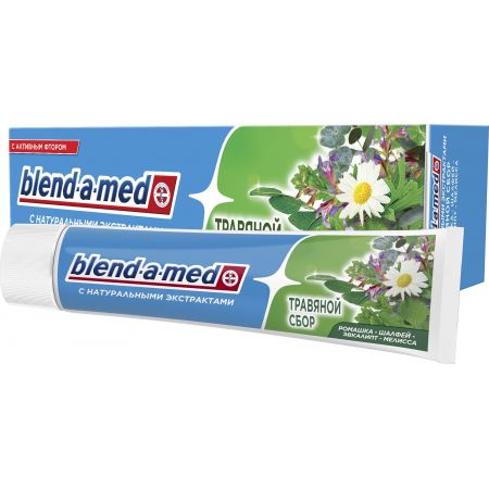 Зубная паста Blend-a-med с натуральными экстрактами ромашки, шалфея, эвкалипта и мелиссы помогает поддерживать здоровье зубов и десен.